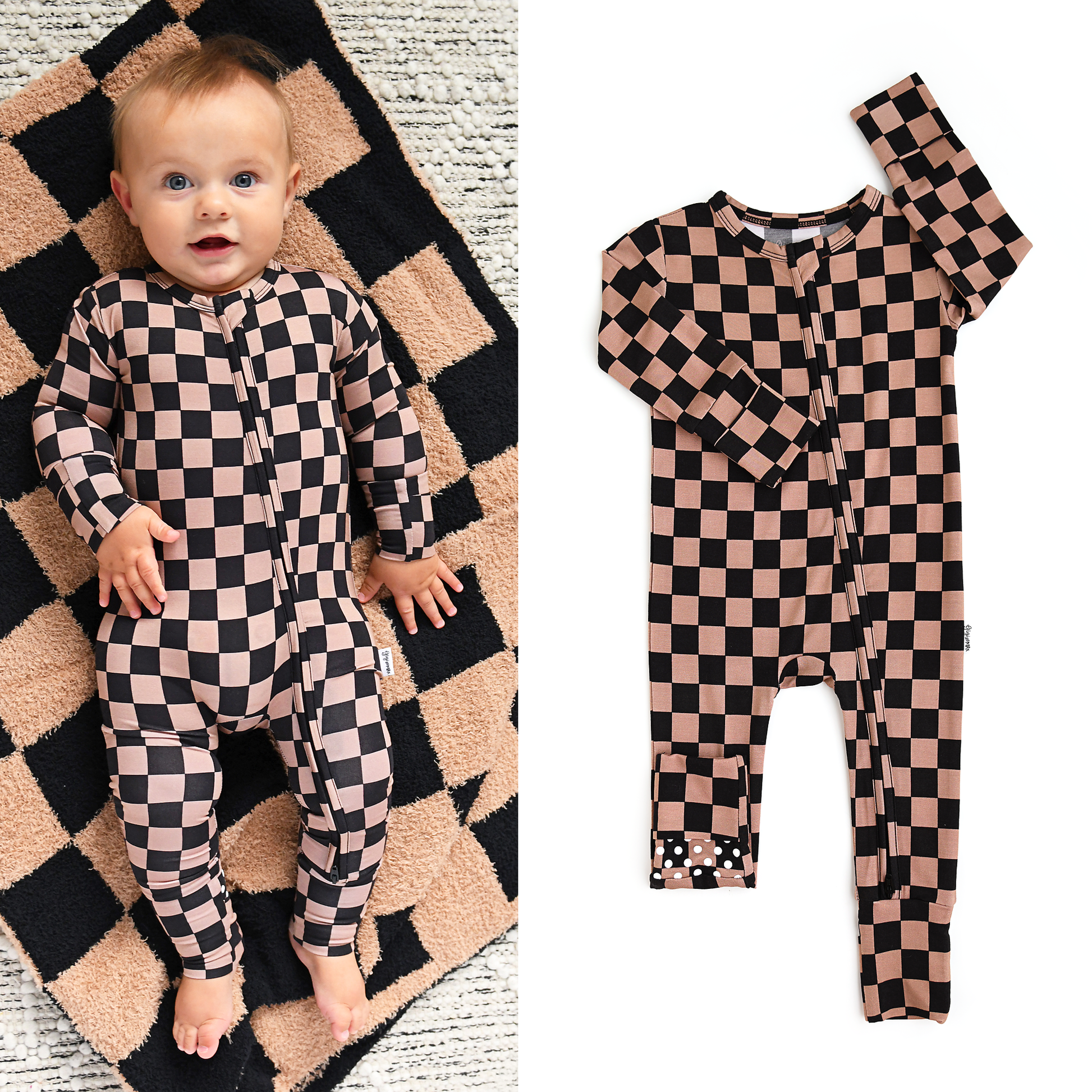 This zip one piece is super soft and comfortable. Featuring a zipper that runs from the top of the outfit to the ankle. Our favorite part about this outfit is that the zipper is 2 way! Making for super easy diaper changes without having to remove the whole outfit.
