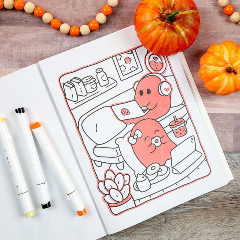 The scenes in this coloring book are sure to make you feel comfortably cozy as you color in the cute and creepy creatures!