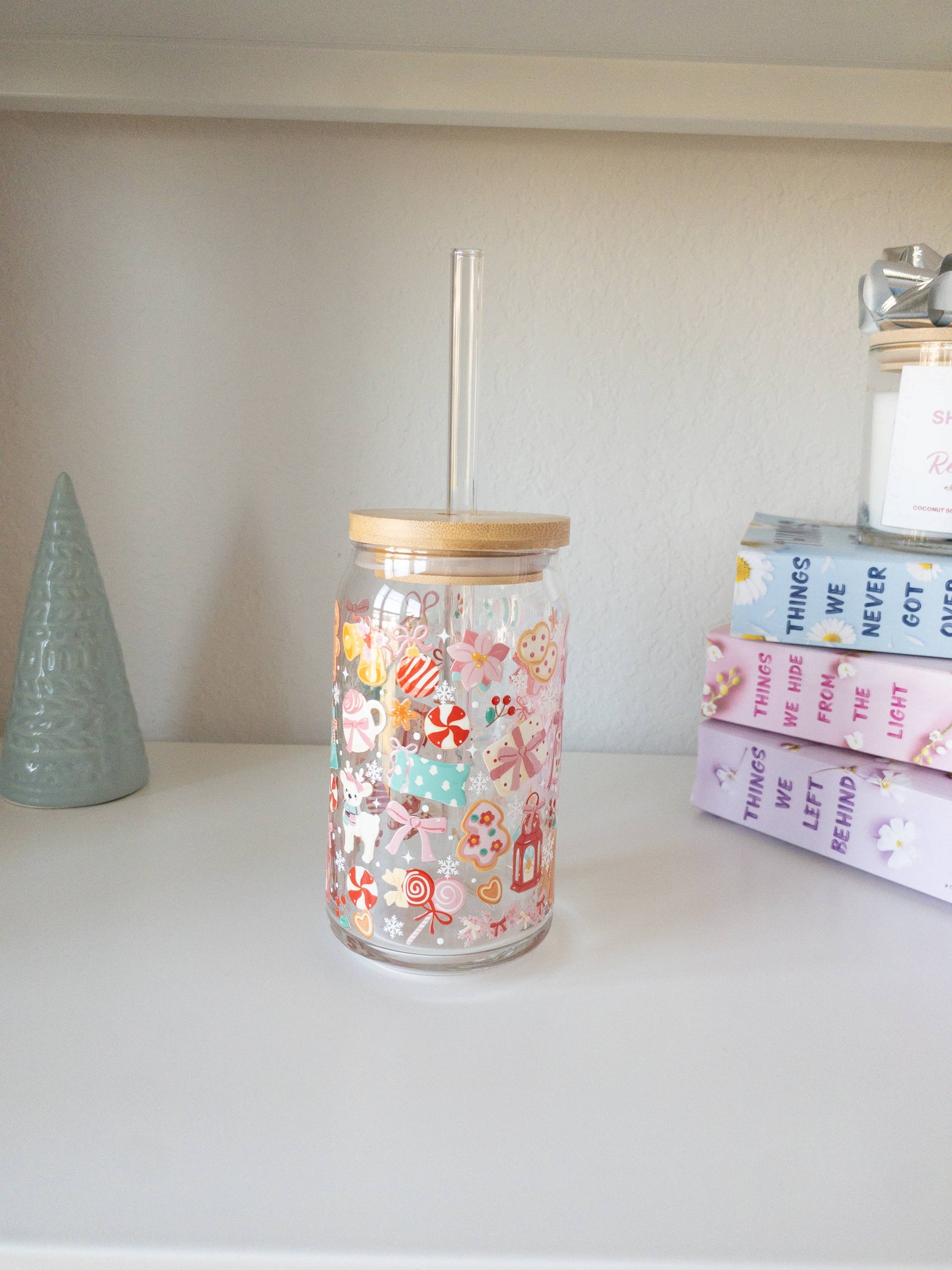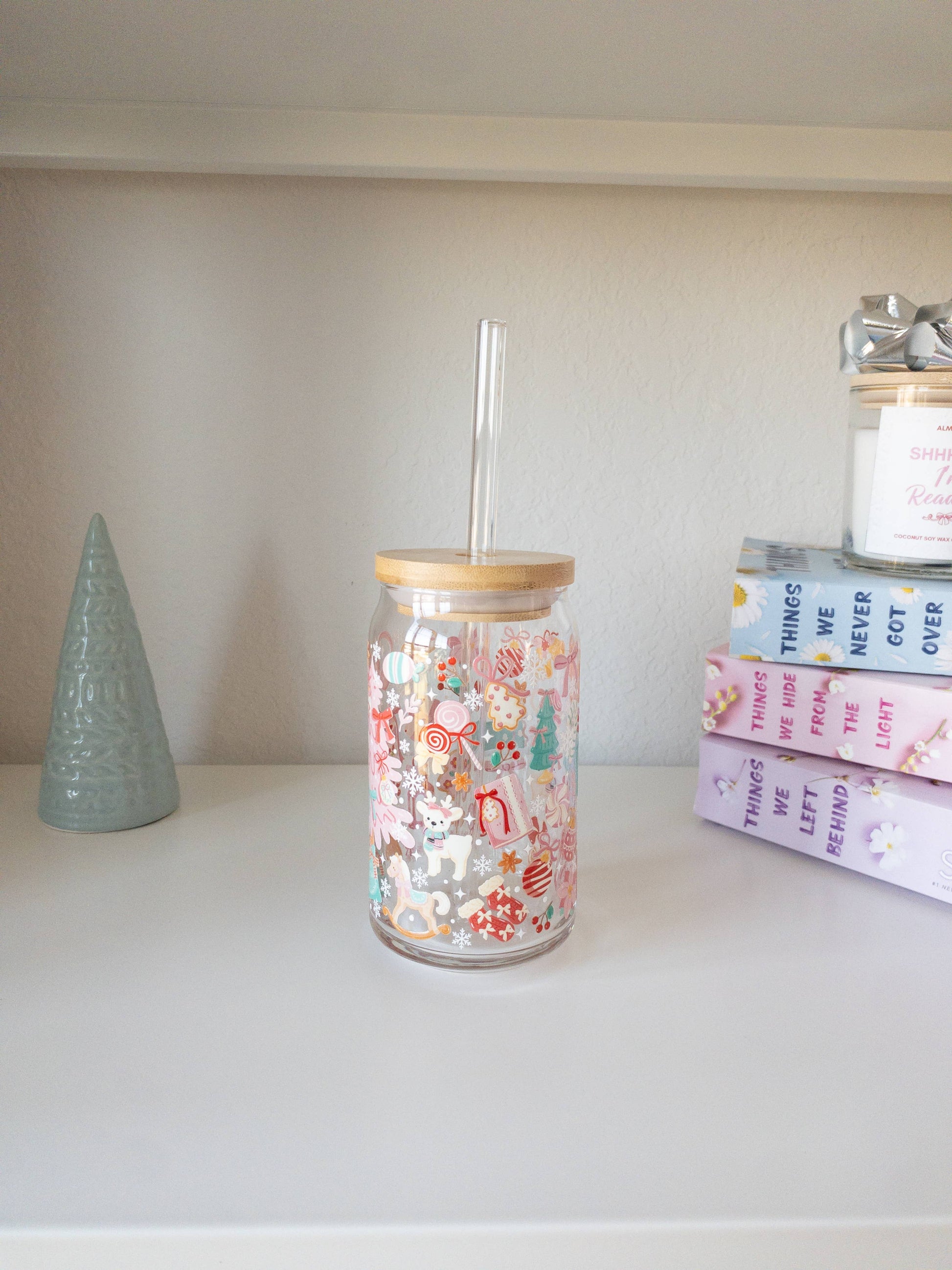 Pastel Holiday Glass Cup – 16oz: Add bent straw and lid